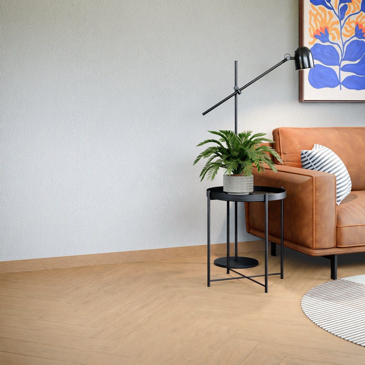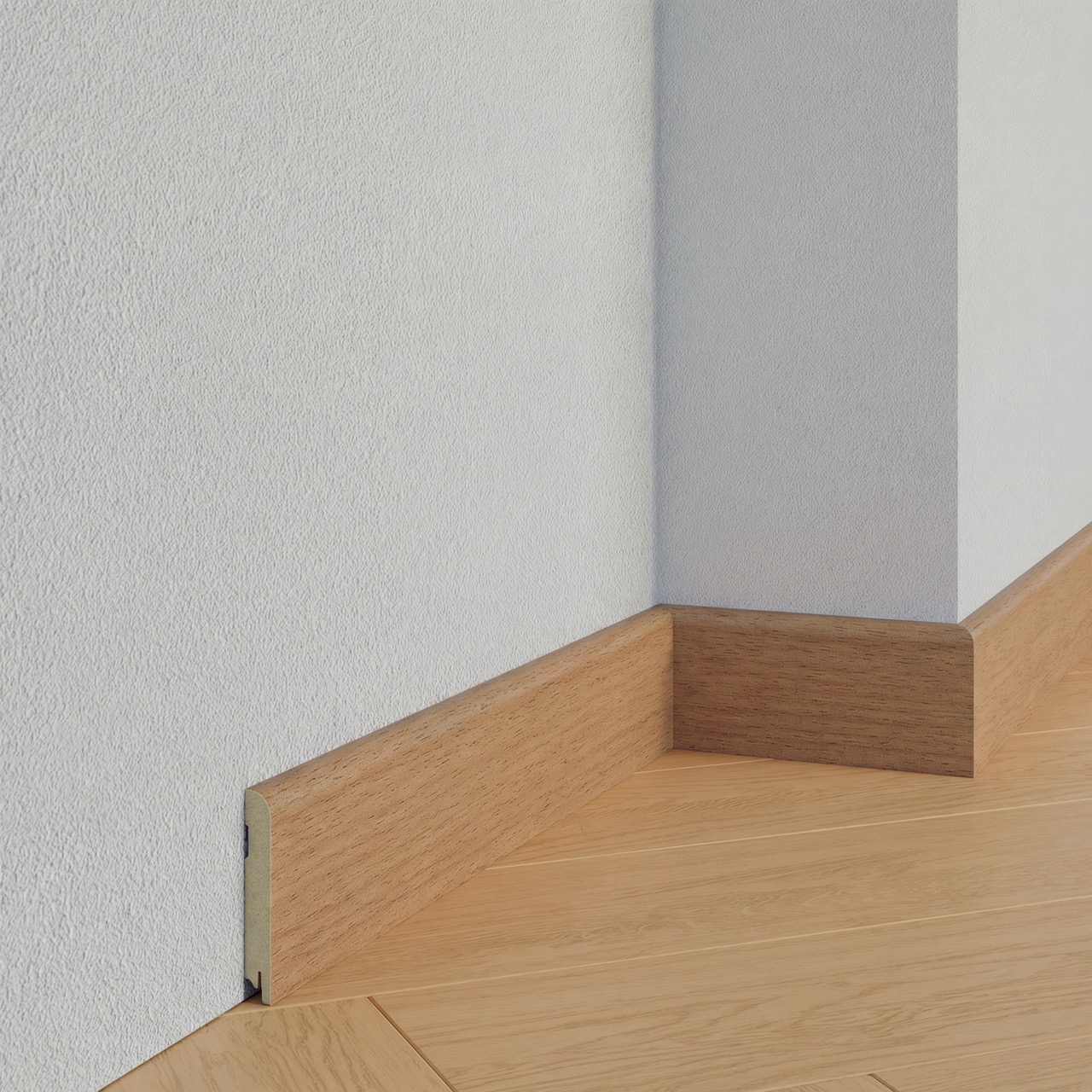 Deze fineerplint heeft een multiplexkern en is ommanteld met een laag folie met houtprint (beuken). Deze plint is extreem sterk en vochtbestendig. Daarnaast is deze plint erg stabiel en verkleurt hij niet door zonlicht.
