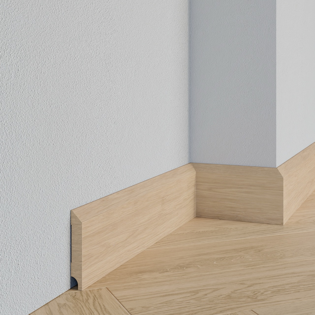 De decoplint heeft een volledig afgeschuinde bovenzijde. Door deze afschuining is deze plint minder gevoelig voor het vasthouden van vallend stof. De decoplint heeft verder een strakke uitstraling. Hierdoor wordt deze plint veel in moderne en industriële interieurs gebruikt.