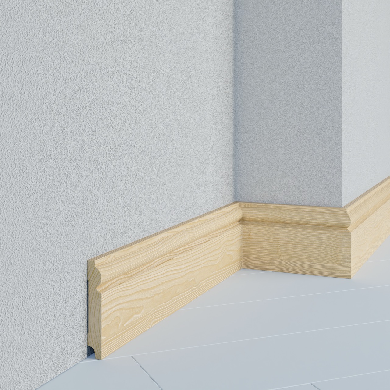 Deze plint is gemaakt van foutvrij grenen zonder knoesten en is niet verlijmd of gevingerlast. Uw plint wordt dus uit 1 stuk hout gemaakt en is in alle afwerkingen te verkrijgen.