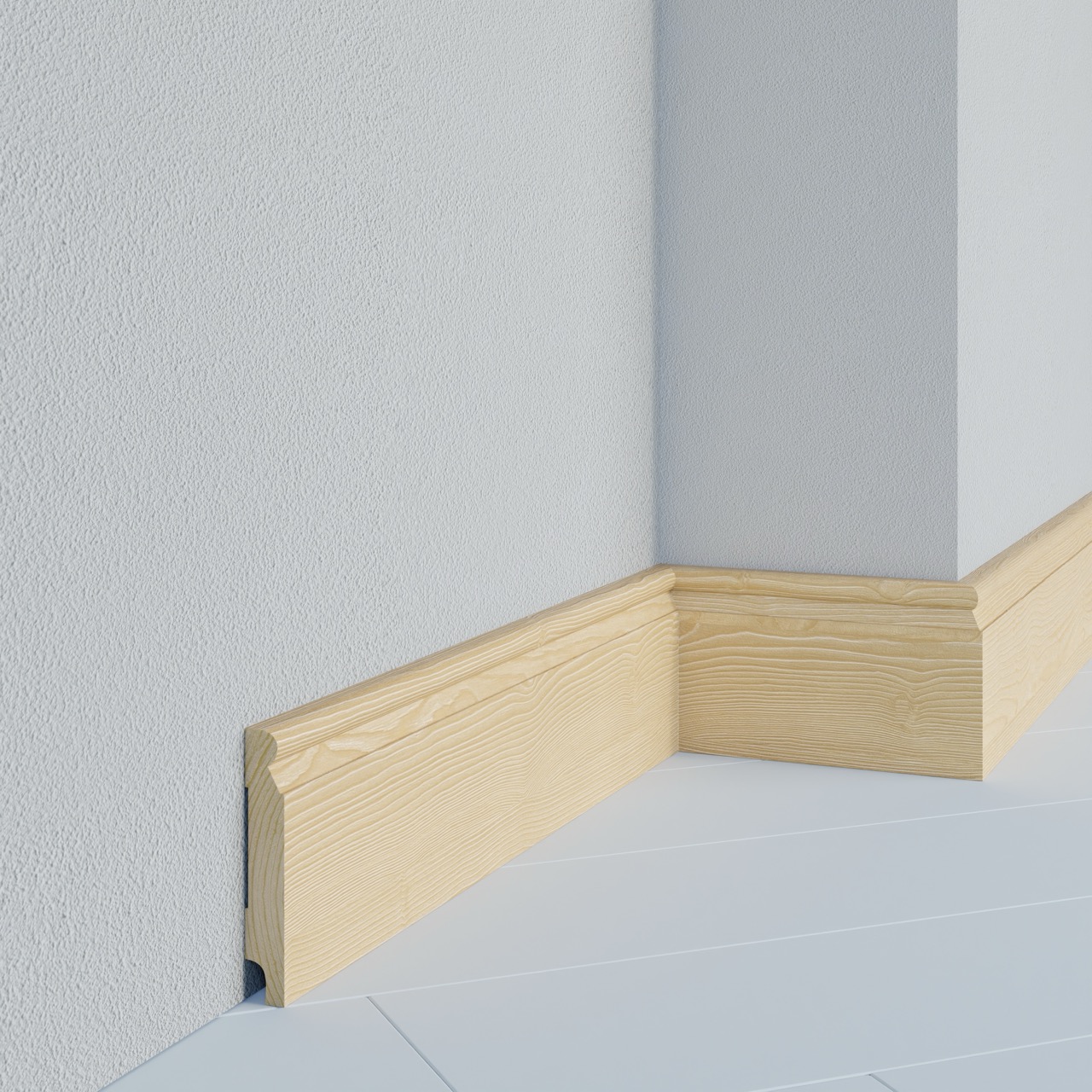 Deze plint is gemaakt van foutvrij grenen zonder knoesten en is niet verlijmd of gevingerlast. Uw plint wordt dus uit 1 stuk hout gemaakt en is in alle afwerkingen te verkrijgen.