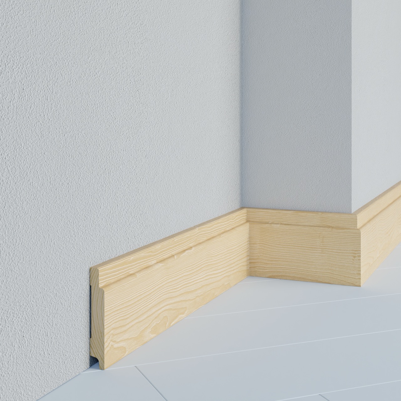 Deze plint is gemaakt van licht rustiek grenen met kleine knoesten en is niet verlijmd of gevingerlast. Uw plint wordt dus uit stuk hout gemaakt en is in alle afwerkingen te verkrijgen.