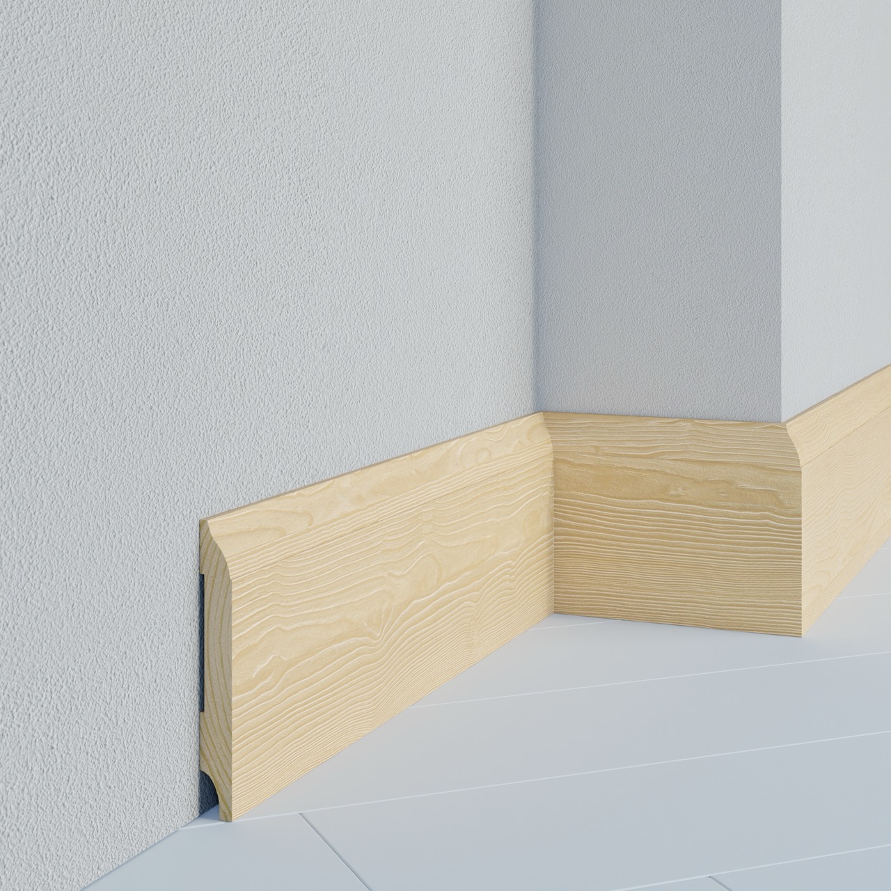 Deze plint is gemaakt van licht rustiek grenen met kleine knoesten en is niet verlijmd of gevingerlast. Uw plint wordt dus uit stuk hout gemaakt en is in alle afwerkingen te verkrijgen.