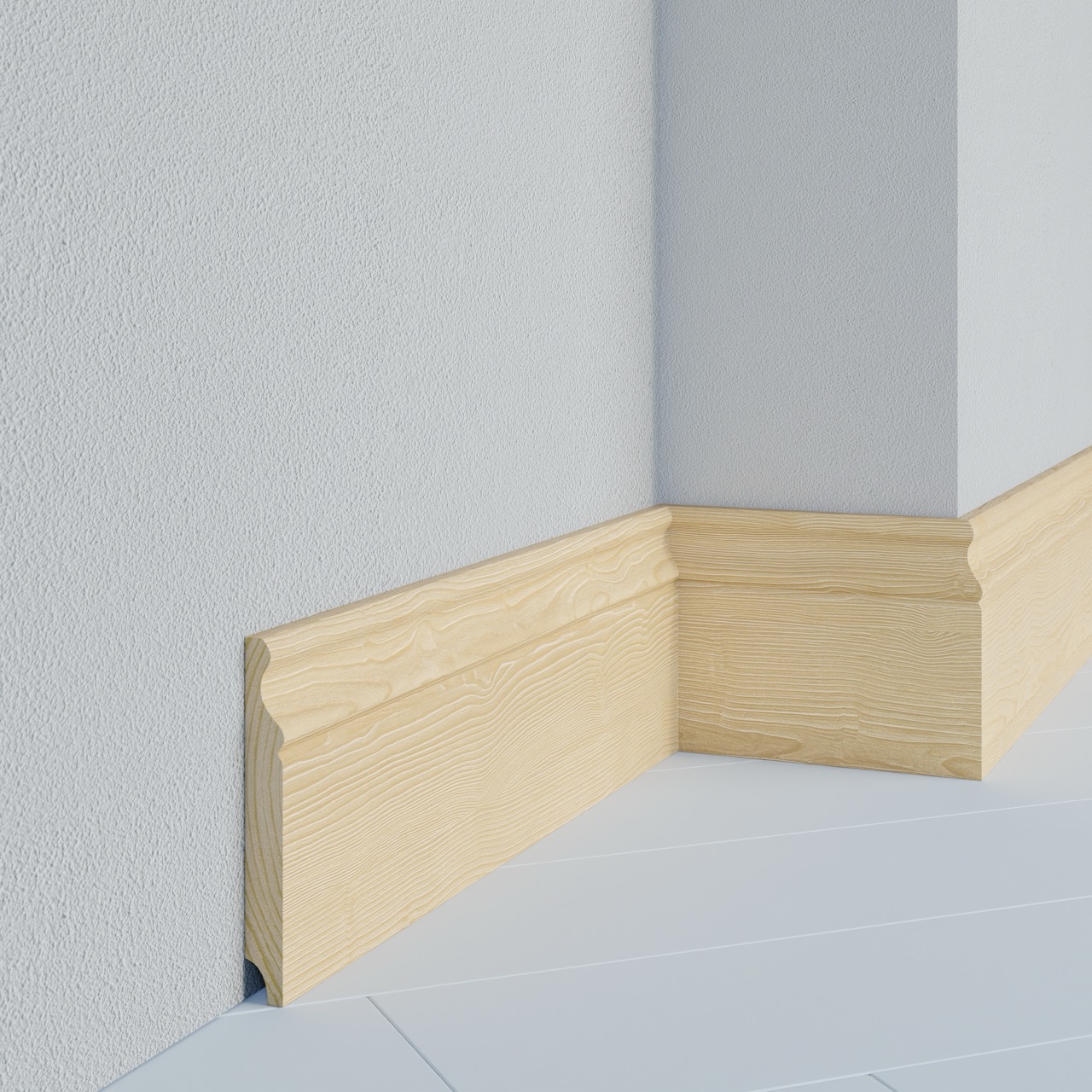 Deze plint is gemaakt van licht rustiek grenen met kleine knoesten en is niet verlijmd of gevingerlast. Uw plint wordt dus uit stuk hout gemaakt en is in alle afwerkingen te verkrijgen.